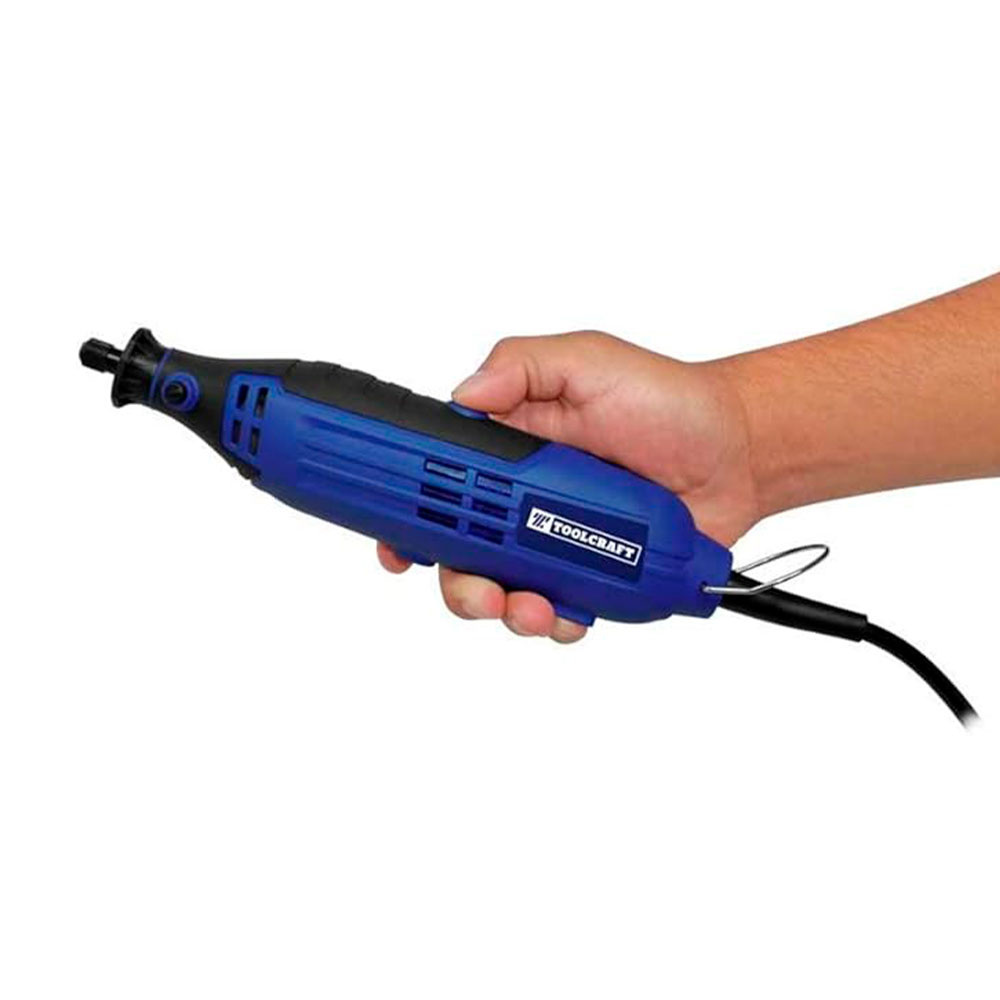 Voltaje: 127 V – Frecuencia: 60 Hz – Potencia: 150 W – Velocidad: 10,000 – 36,000 RPM – Diámetro: 1/8″ – Ciclo de trabajo: 30 min / 15 min – Uso máximo diario: 3 horas Botón regulador de velocidad. Gancho de sujeción. Ideal para trabajos domésticos.